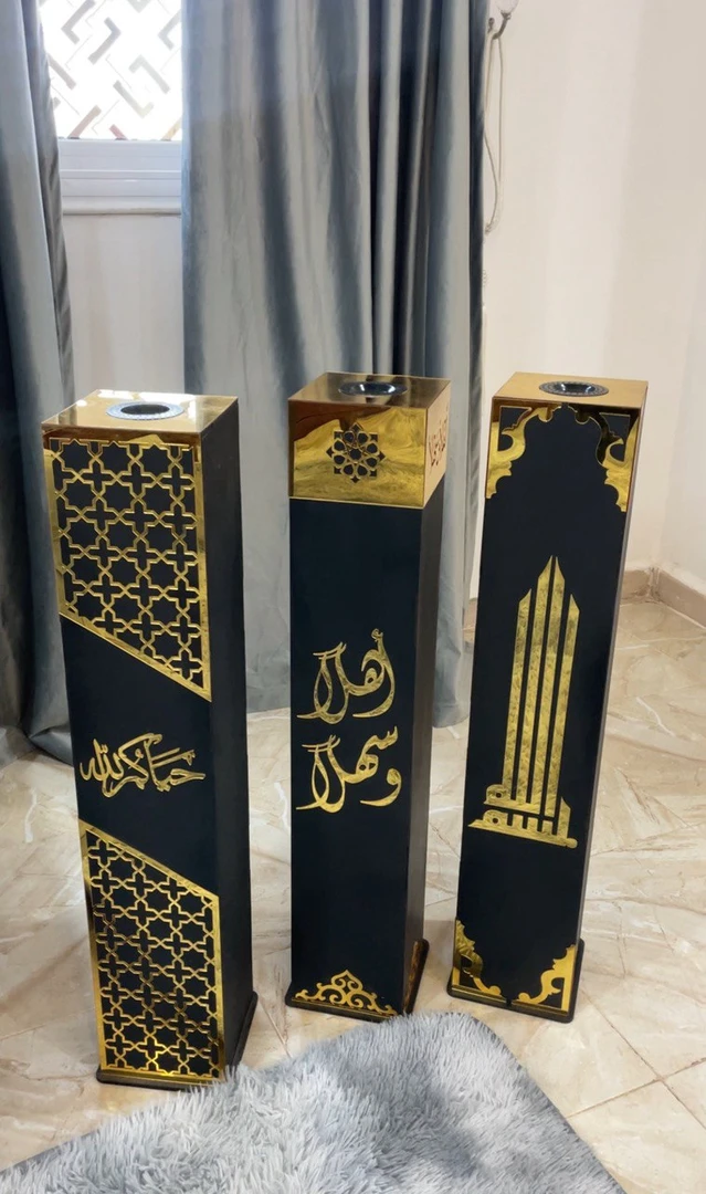 3000 د.جمبخرة استقبال فاخرة بتصميم عصري ممزوّج بزخرفة عربية راقية، تجمع بين اللون الأسود الملكي واللمسة الذهبية اللامعة، وتزيد أي فضاء لمسة ترحاب وأناقة